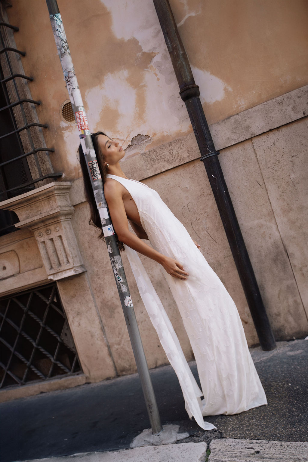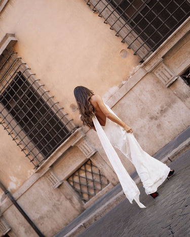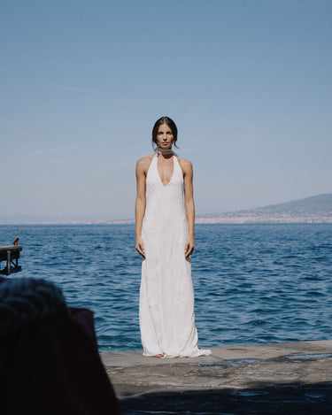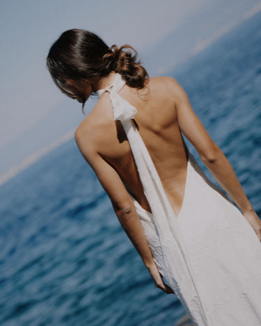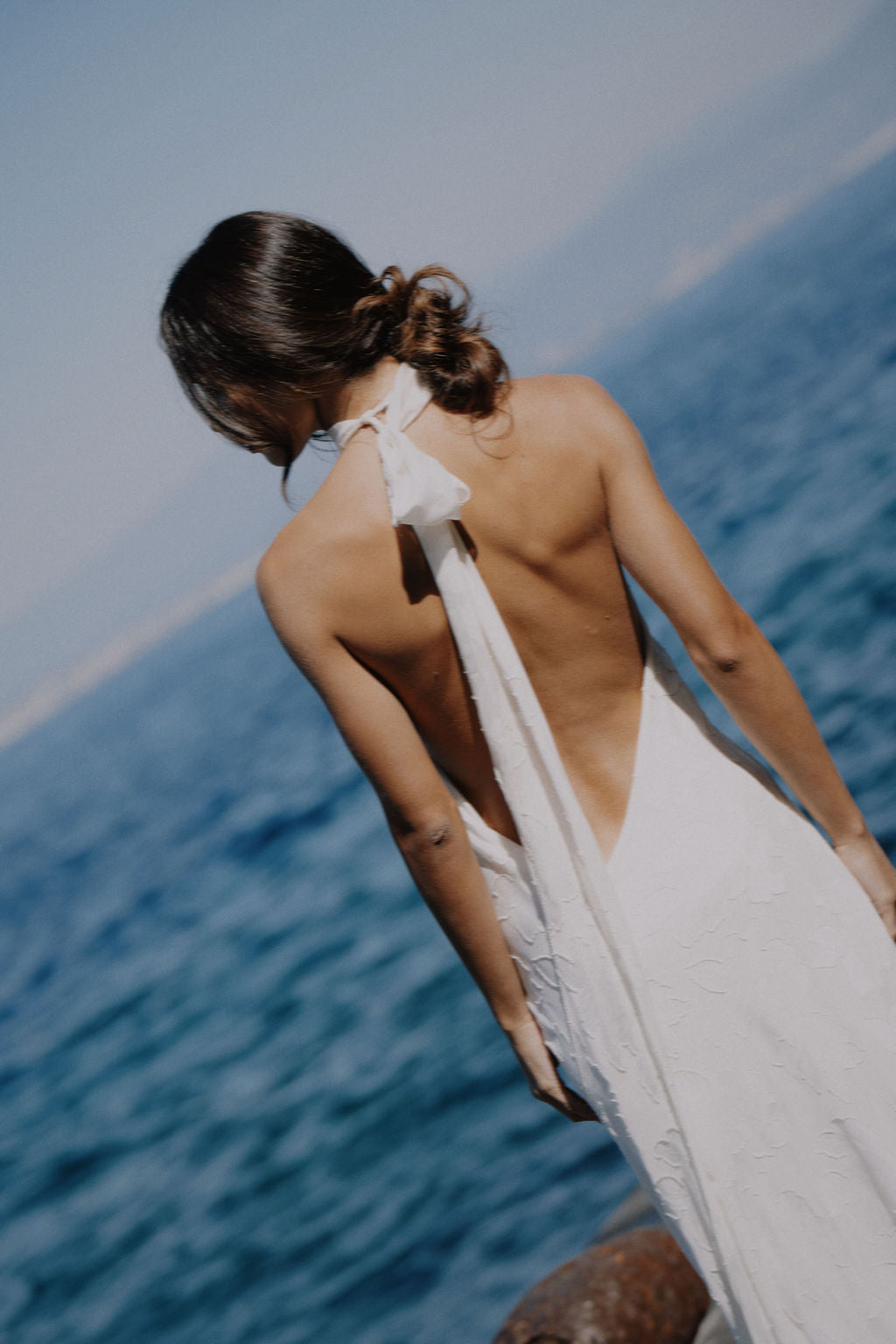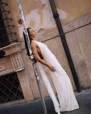 It can be tied in many ways! The dress has a lot of movement and weight that flows with you as you walk… It's impossible not to feel spectacular!