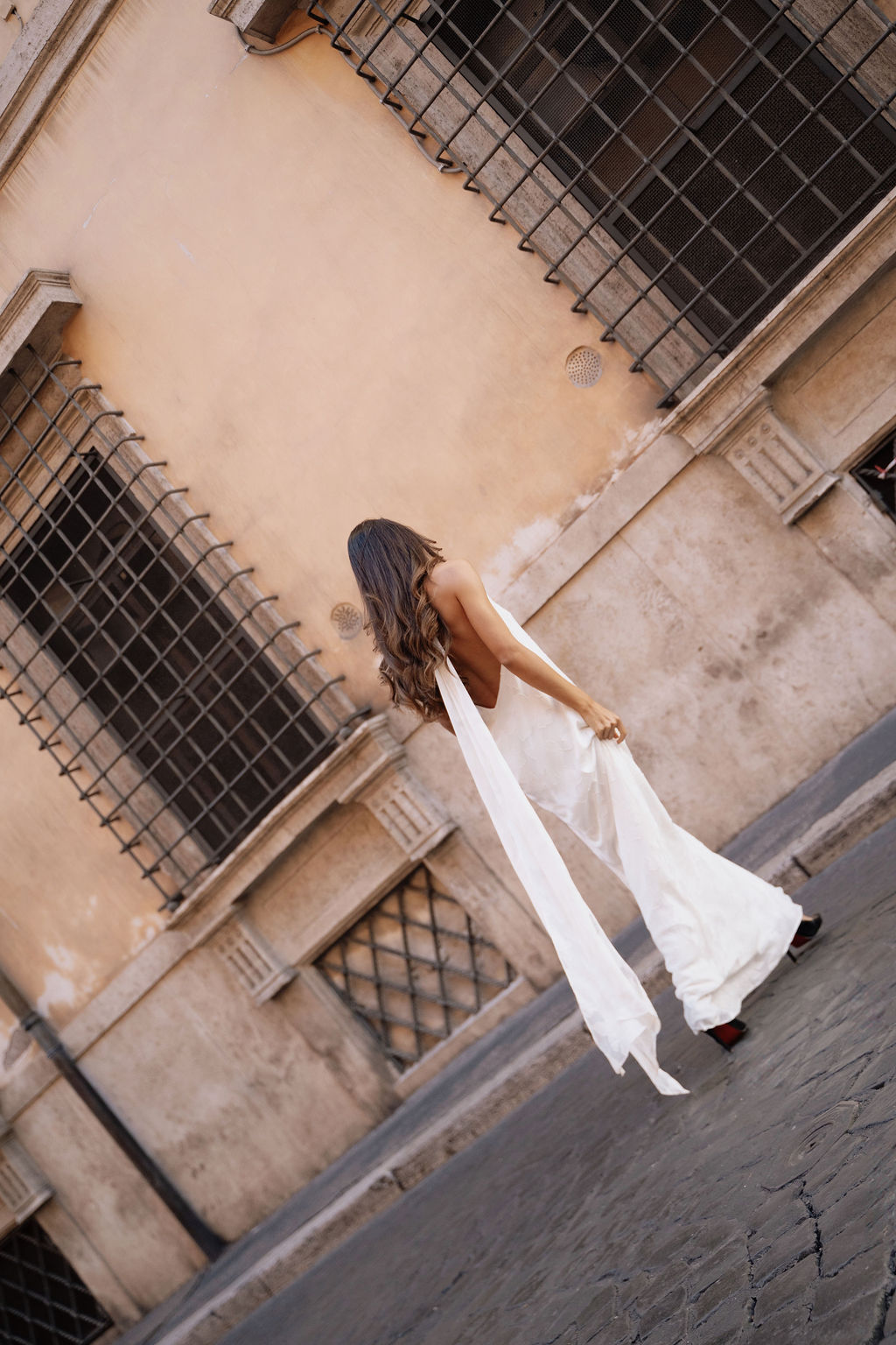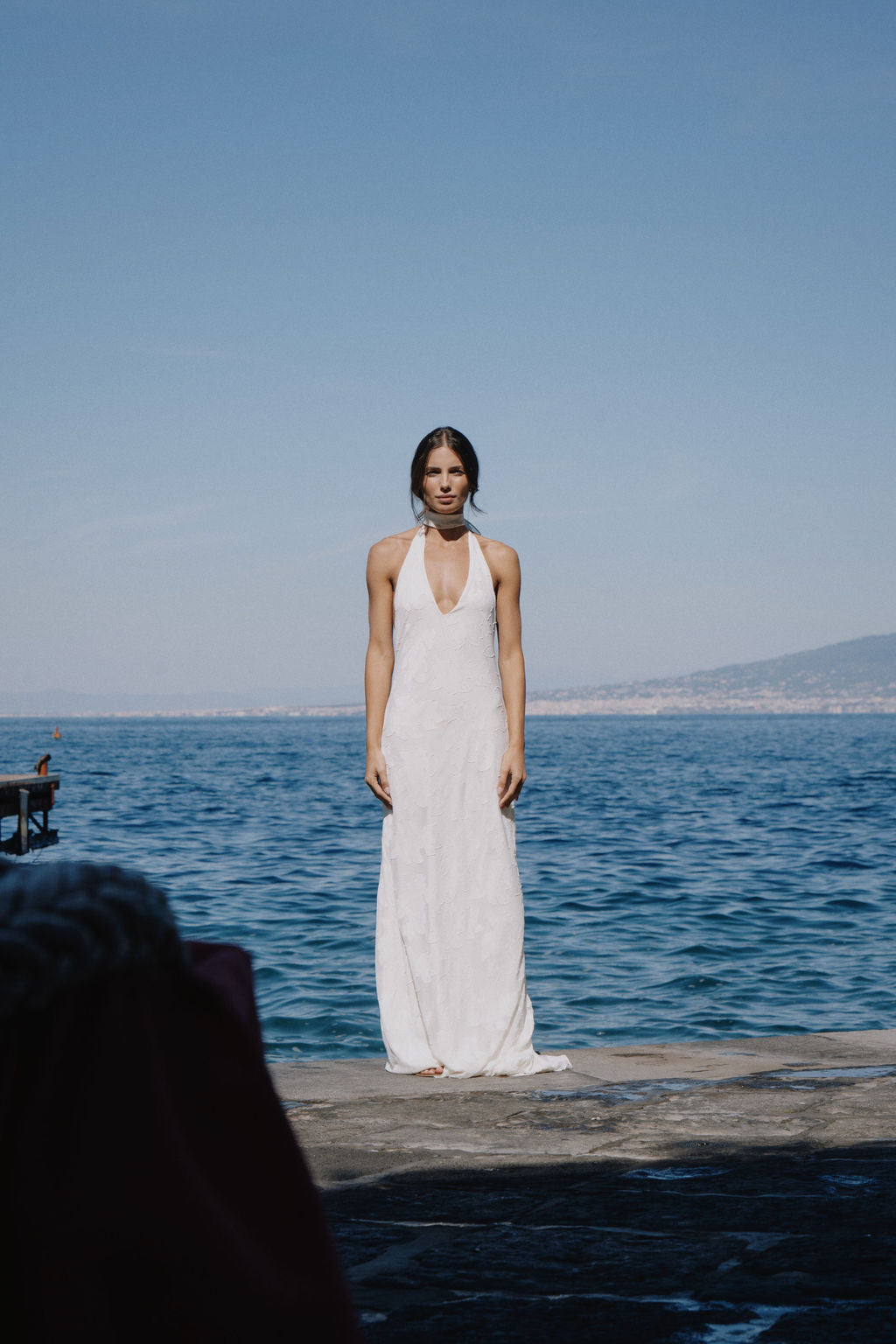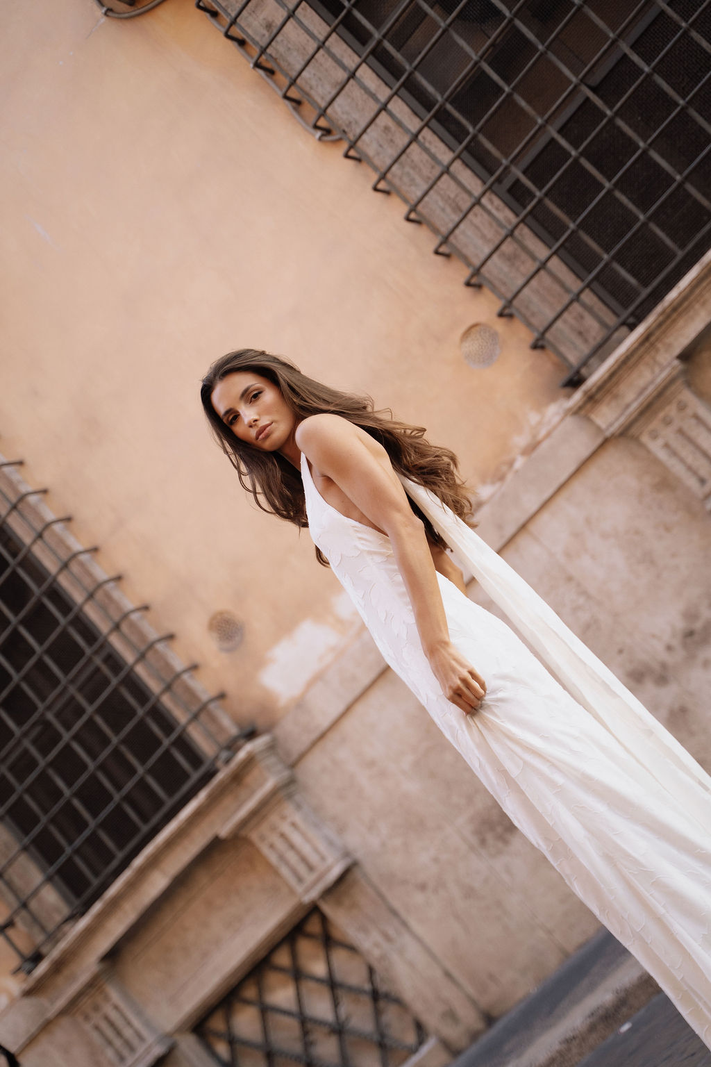 It can be tied in many ways! The dress has a lot of movement and weight that flows with you as you walk… It's impossible not to feel spectacular!