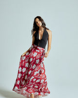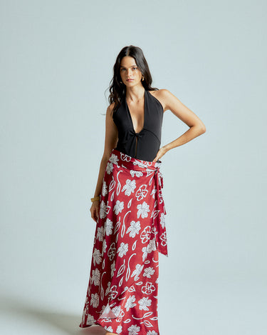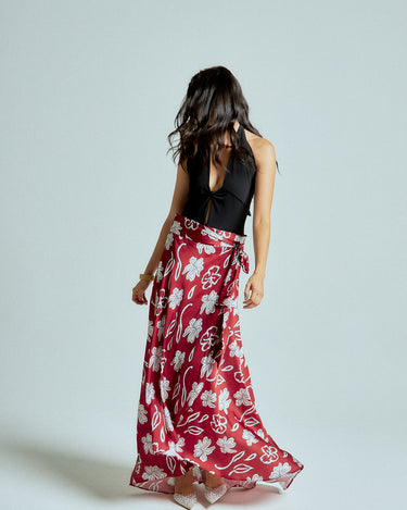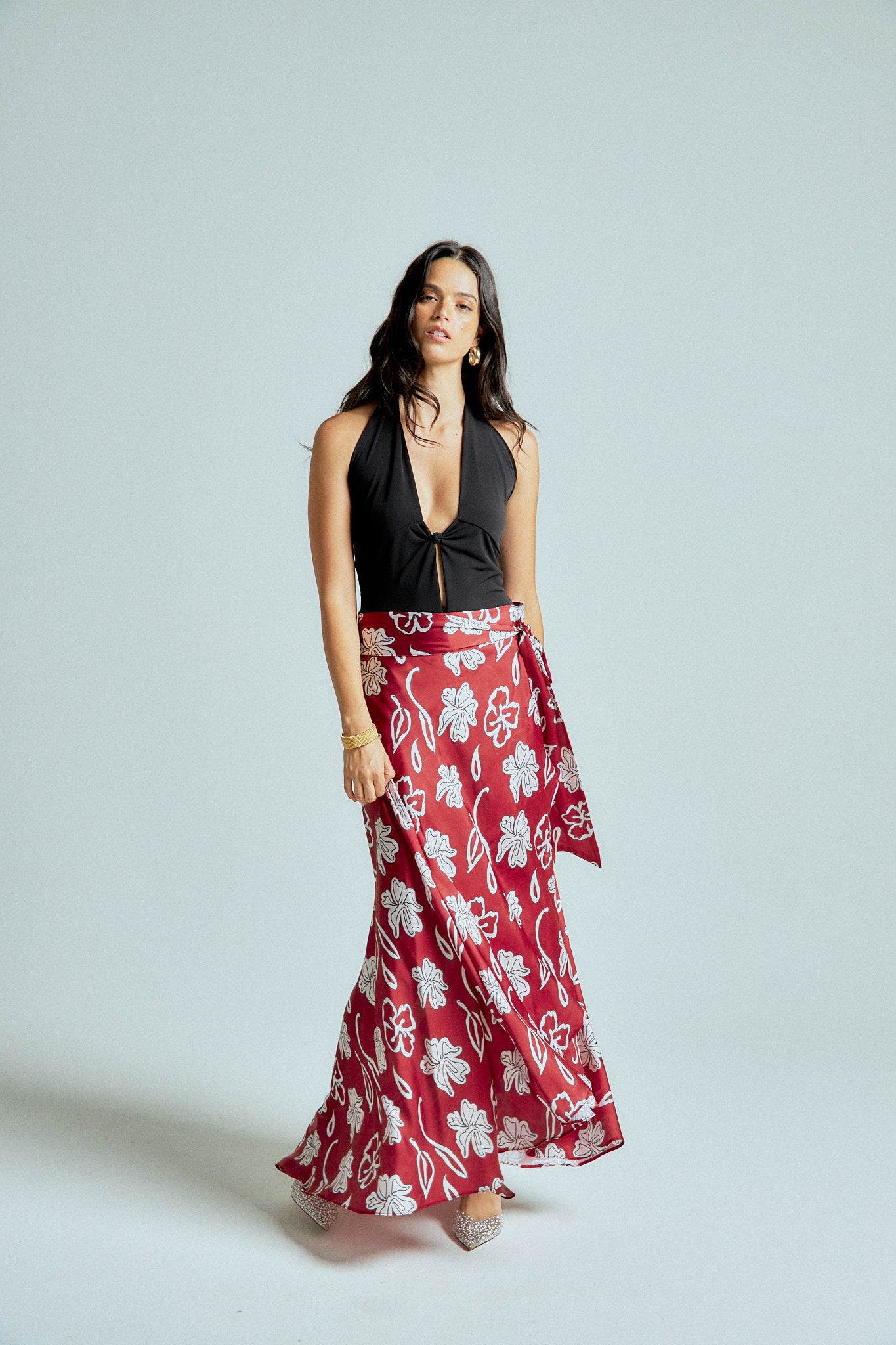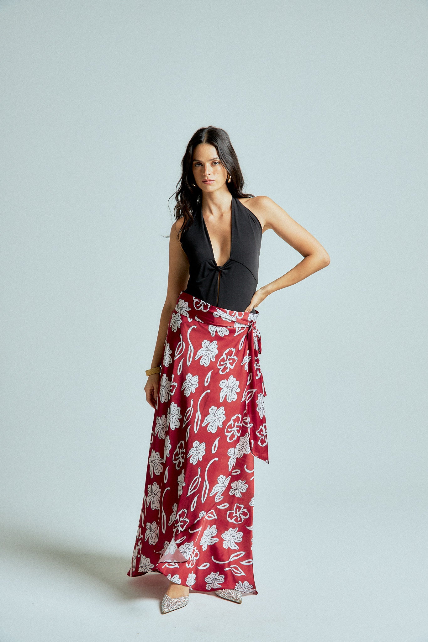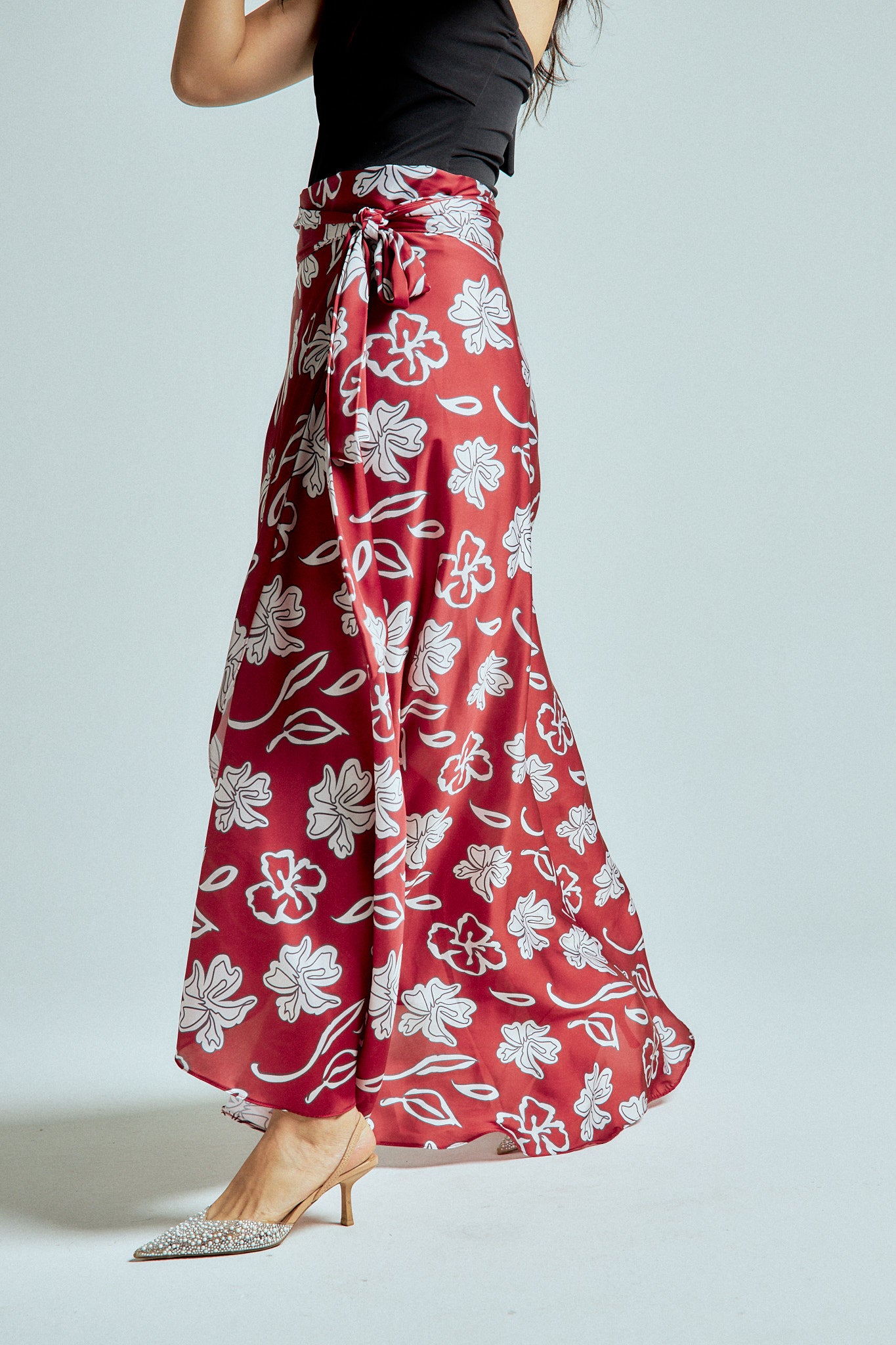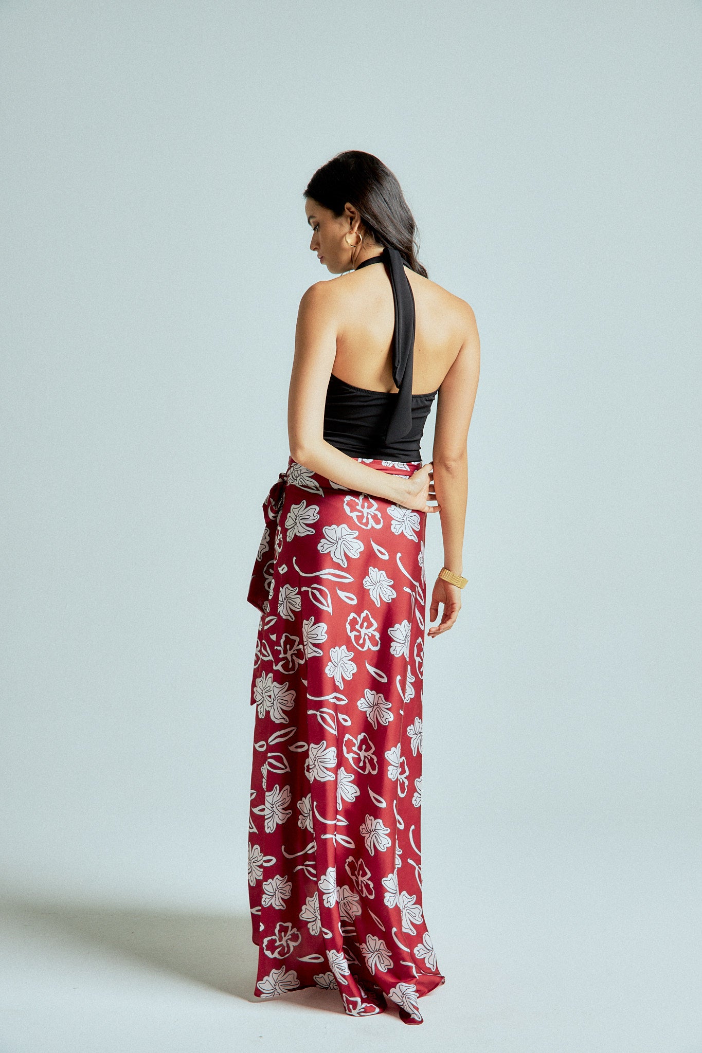 An eye-catching full-length wrap skirt in our almendra print, crafted in our signature polyester silk for fluid drape and radiant motion. Designed as a true wrap silhouette, it adjusts at the waist to comfortably fit from XS to XL, making it as versatile as it is striking. The flowing shape enhances every step, while the exclusive in-house print brings personality, color, and confidence to your look.