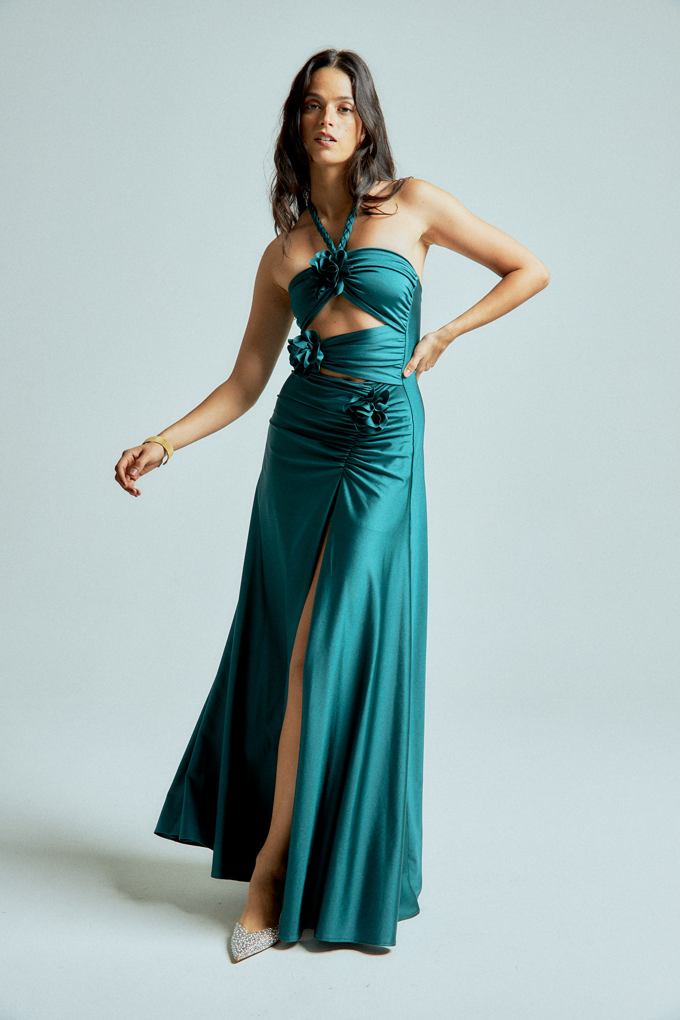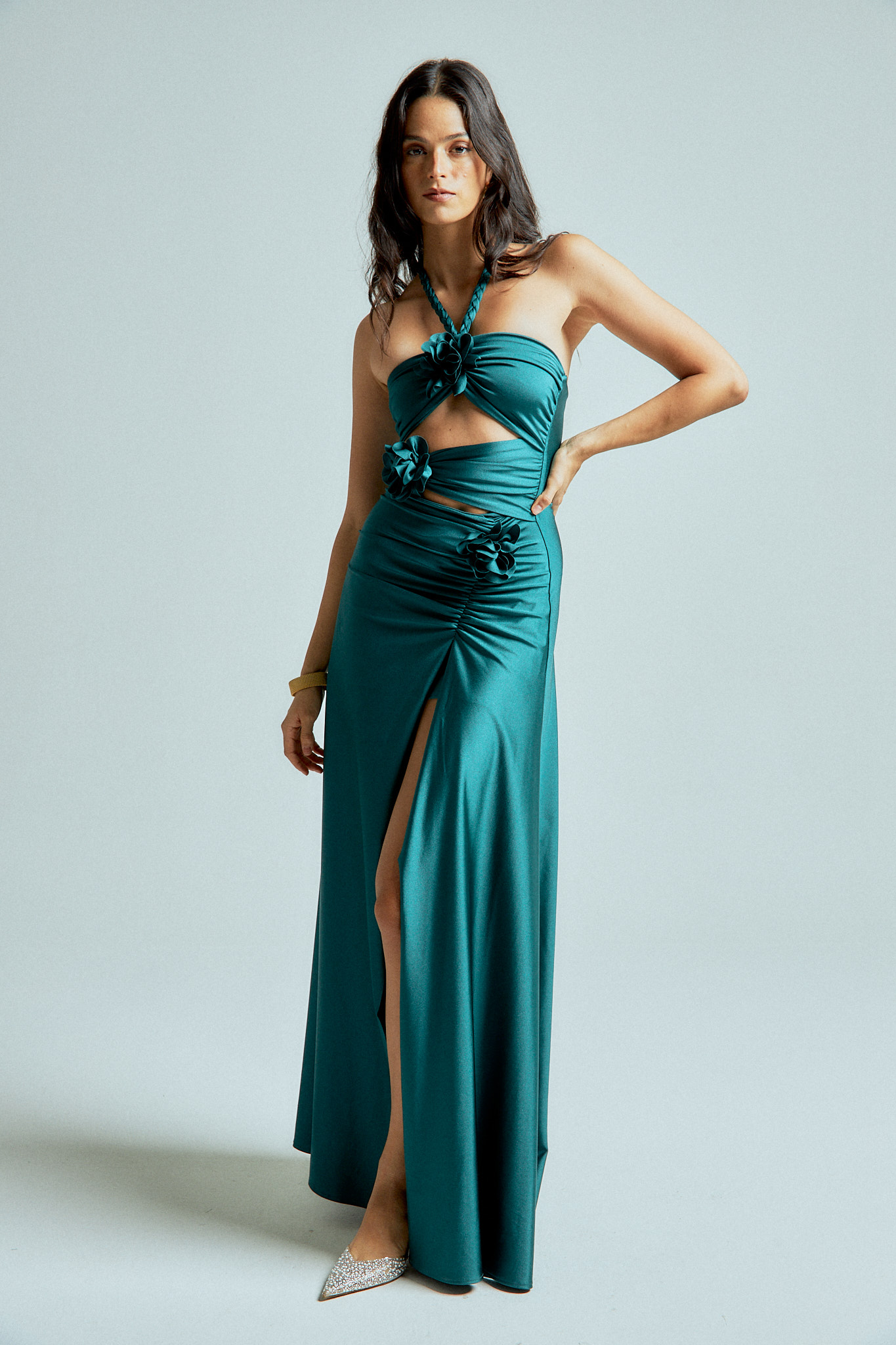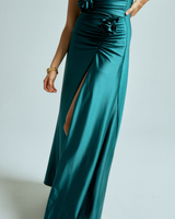 - Flirty slit with gentle ruching for a subtle touch of allure