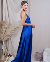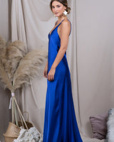 Vestido largo de seda con forro de seda* (para evitar que se noten las líneas), cortado al bies, lo que le da una caída espectacular y se adapta a la perfección al cuerpo sin apretar. Tiene forma de "A".