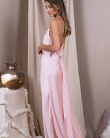 Vestido largo de seda con forro de seda* (para evitar que se noten las líneas), cortado al bies, lo que le da una caída espectacular y se adapta a la perfección al cuerpo sin apretar. Tiene forma de "A".