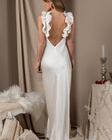 Vestido largo de seda con forro de seda (para evitar marcas), cortado al bies para una caída espectacular que se ajusta al cuerpo a la perfección sin apretar. Tiene forma de "A".