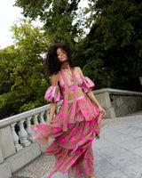 El diseño consta de capas de gasa, ¡muy ligeras para disfrutar al máximo de tu movimiento! Cuenta con un forro de licra Dupont con el mismo estampado, diseñado para que al moverte, el efecto que hay debajo sea visible… ¡Y como siempre, diseñado exclusivamente por nosotros para ti!