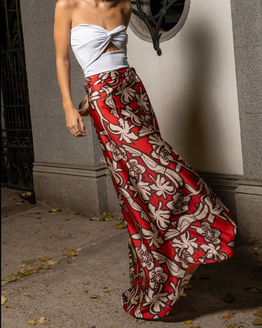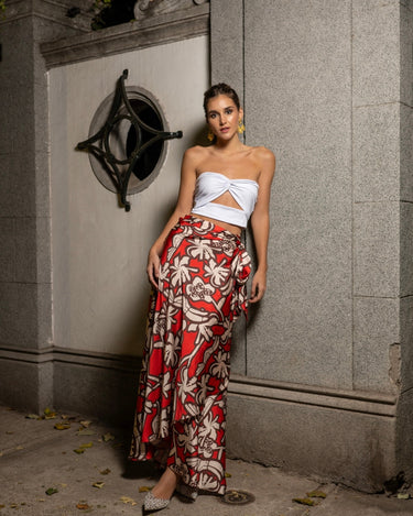 Esta falda cruzada, fluida y larga, está confeccionada en nuestra exclusiva seda de poliéster y diseñada para adaptarse a tus movimientos. Su lazo ajustable ofrece un ajuste favorecedor y versátil que se adapta cómodamente a diversas complexiones, hasta la talla XL.