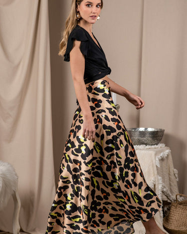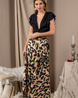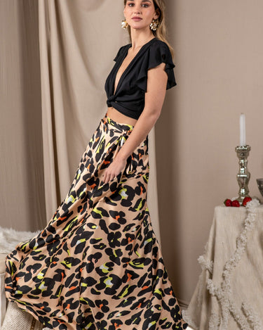 Esta falda cruzada, fluida y larga, está confeccionada en nuestra exclusiva seda de poliéster y diseñada para adaptarse a tus movimientos. Su lazo ajustable ofrece un ajuste favorecedor y versátil que se adapta cómodamente a diversas complexiones, hasta la talla XL.