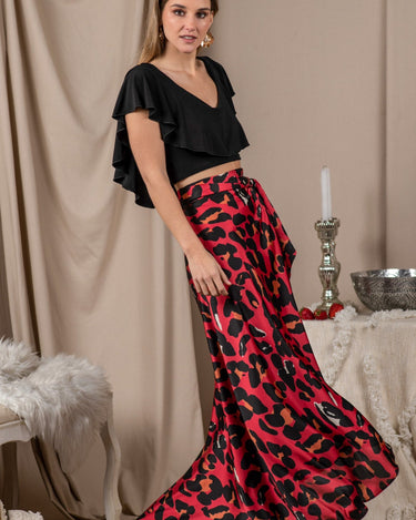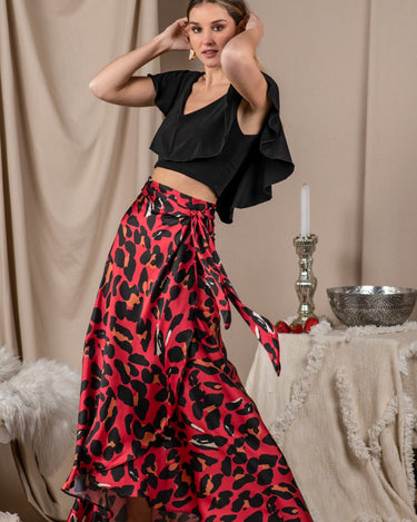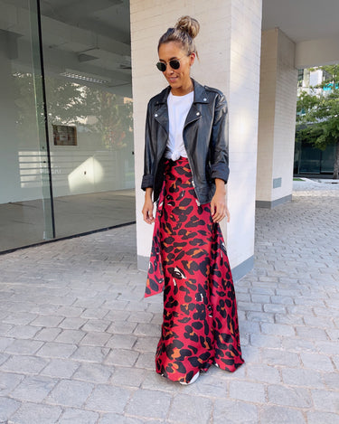 Esta falda cruzada, fluida y larga, está confeccionada en nuestra exclusiva seda de poliéster y diseñada para adaptarse a tus movimientos. Su lazo ajustable ofrece un ajuste favorecedor y versátil que se adapta cómodamente a diversas complexiones, hasta la talla XL.