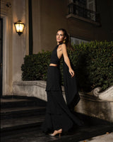 Confeccionado en gasa ligera, presenta volantes en capas que fluyen con gracia a cada paso. La cinturilla suave y elástica garantiza un ajuste cómodo que se adapta naturalmente a tu figura.