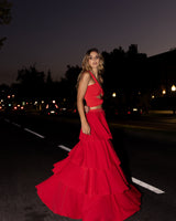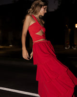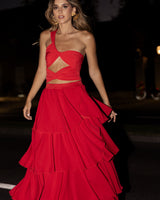 Falda roja con múltiples capas de crepé ligero con volantes, que ofrece mucho movimiento para que te veas tan encantadora como te sientes al usarla.
