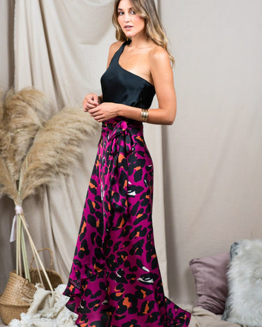 Esta falda cruzada, fluida y larga, está confeccionada en nuestra exclusiva seda de poliéster y diseñada para adaptarse a tus movimientos. Su lazo ajustable ofrece un ajuste favorecedor y versátil que se adapta cómodamente a diversas complexiones, hasta la talla XL.