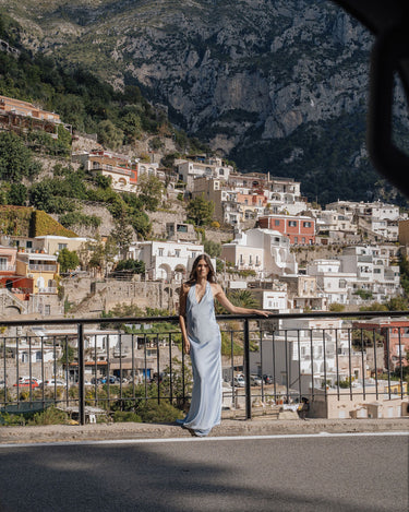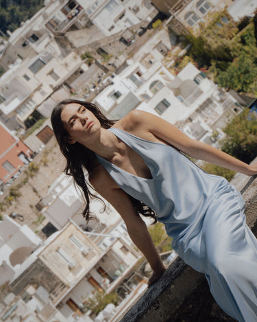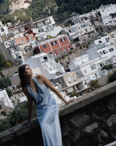 It can be tied in many ways! The dress has a lot of movement and weight that flows with you as you walk… It's impossible not to feel spectacular!